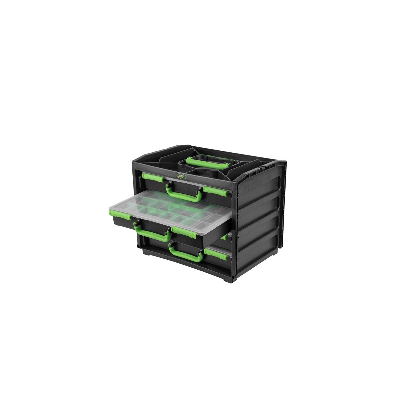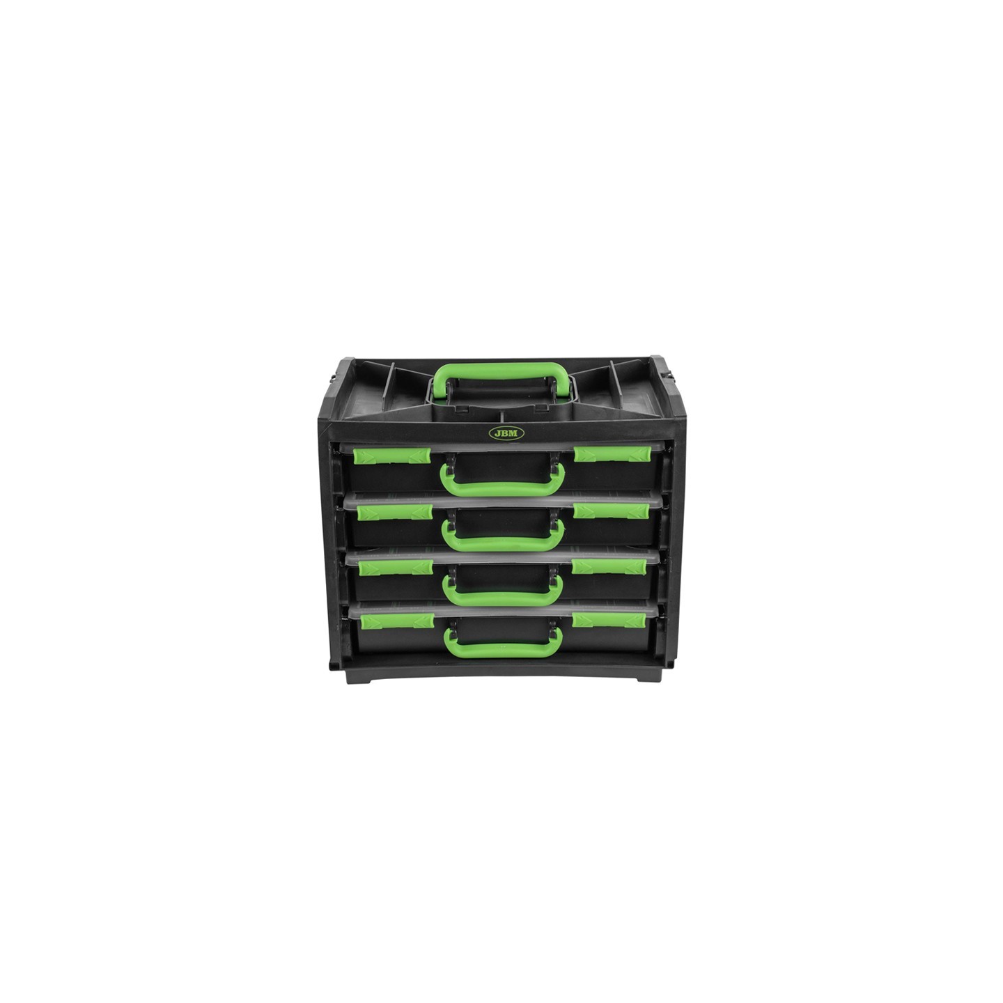 Cuando el volumen de pequeños componentes empieza a crecer, contar con un sistema de organización práctico marca la diferencia. Esta caja con 4 maletines extraíbles de JBM permite clasificar y transportar piezas de forma estructurada.