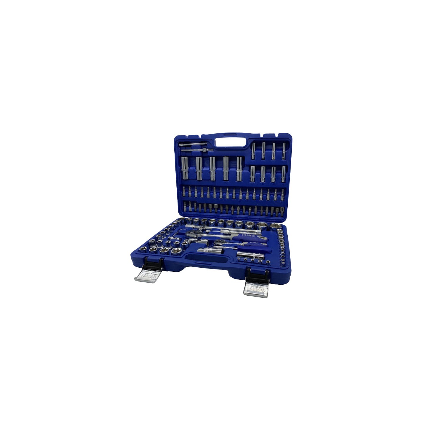Maletín de 109 piezas con llaves de vaso y accesorios, pensado para trabajos de mecánica, mantenimiento y montaje técnico, con organización interior compacta y práctica.